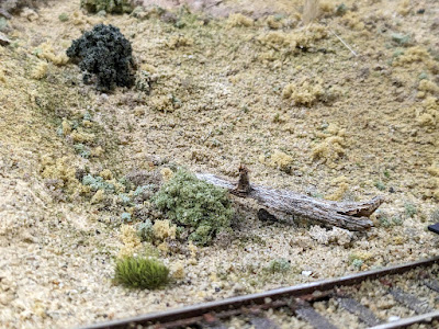 I added some vegetation to the creek bed and the hillside behind the engine house.